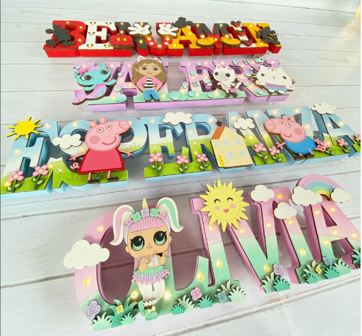 Creamos diseños únicos con nombres, temáticas y colores a tu elección.